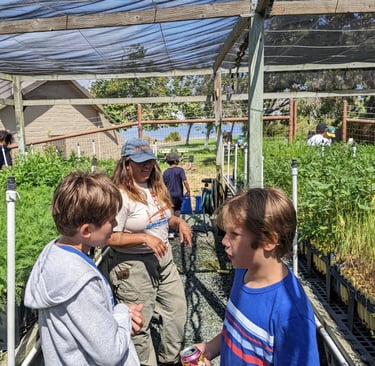 After the cleanup, Save the Bay hosted a tour of their native plant nursery, where we learned about the crucial role that wetlands play in protecting our environment. Wetlands not only support biodiversity and protect the shoreline from erosion, but they also act as natural filters, reducing pollution in the Bay. The nursery tour gave us a firsthand look at the native plants being cultivated to restore these vital ecosystems.