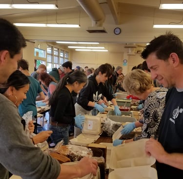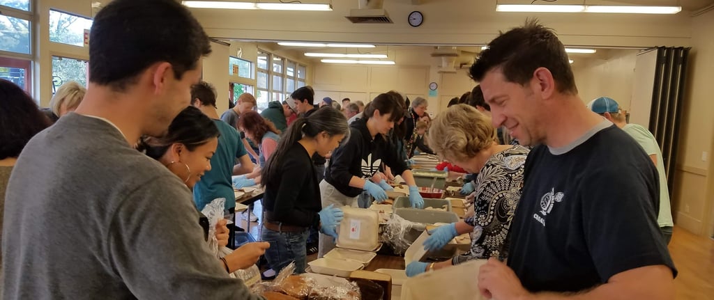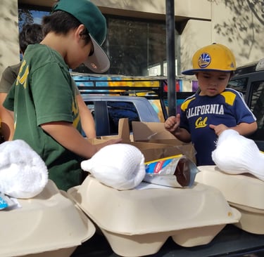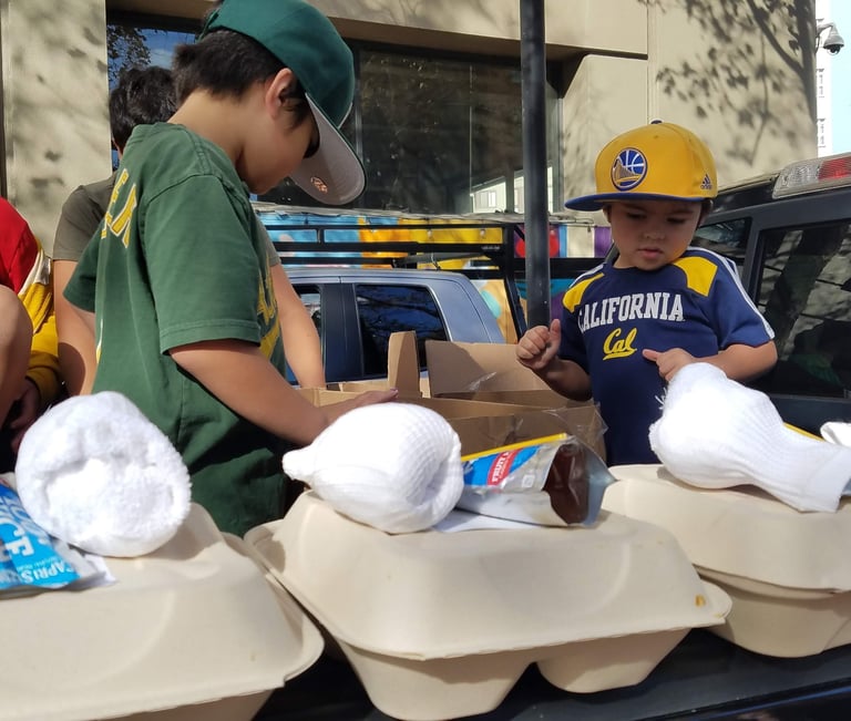 While the kids focused on the decorations, the adults took charge of preparing the plates, organizing the meals, and coordinating the distribution process. With precision and care, they worked together to make sure each meal was packed with love and ready to be delivered to the homeless individuals living in remote areas of San Francisco.